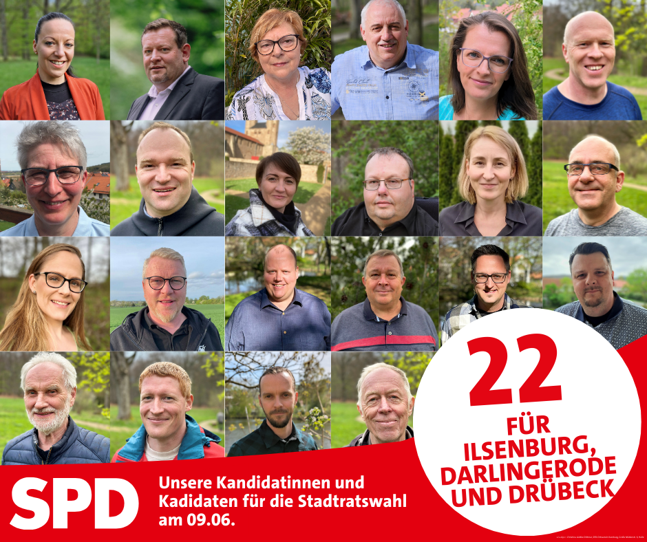 SPD Ilsenburg Unsere Kandidatinnen und Kandidaten für die Stadtratswahl am 9. Juni 2024 24. Mai 2024 by SPD Ilsenburg Für größere Ansicht bitte klicken Unsere Kandidatinnen und Kandidaten für die Stadtratswahl am 9. Juni 2024 hier geht´s zum SPD Wahlprogramm OV Ilsenburg